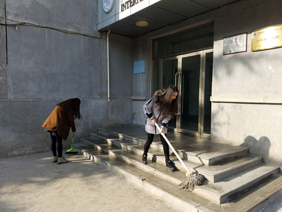 活动期间,学院团委学生干部组织本班同学利用课余时间对教学10号楼教室、留学生公寓、校内学生公寓三四号楼及公共区域、西操场等指定区域进行了大扫除。冬日的寒冷无法阻挡同学们的工作热情,每位同学都希望通过活动为建设美丽校园奉献出自己的力量。永利集团官网各年级学生踊跃参与其中,积极进行文明修身活动,达到了“人人都是建设者、人人都是宣传员”的活动要求。
