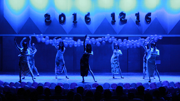 12月16日晚,学院在音乐厅隆重举办“成青春之梦   展旅院风采”2016-2017学年迎新晚会暨先进表彰大会。学院师生400余人参加了本次晚会。