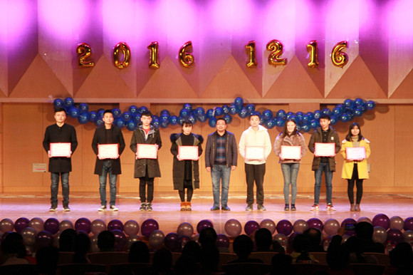 党委书记贾志斌为学院2015-2016学年学习优秀奖获得者李晓伊等8名获奖学生代表颁发了荣誉证书,副院长梁旺斌为为永利yl23411集团官网2015-2016学年模范学生干部奖、道德模范奖、实践创新奖、学术科研奖获得者杨紫晨、陈璐等8名同学颁发了荣誉证书,并与获奖同学合影留念。