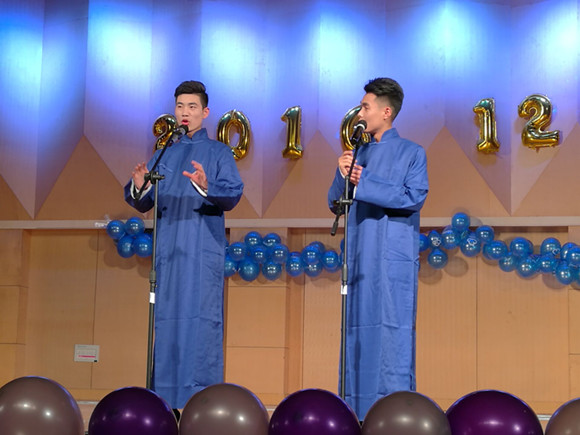 永利yl23411集团官网文艺骨干队成员单红强、郭敏达相声《满腹经纶》
