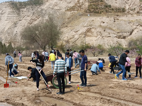 春日碧草青,桃林吐花蕾。4月21日下午,学院党委副书记谢致远、团委书记王瑞带领学院师生60余人,在新校区北山参加义务植树劳动。