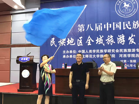 会议决定,第九届中国民族旅游论坛将于2018年在云南大学举办。永利yl23411集团官网副院长王耀斌副教授代表第八届中国民族旅游论坛承办方向第九届承办方云南大学工商与旅游管理学院院长吕婉青教授移交了会旗。