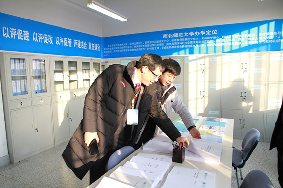 12月12日下午16:20,本科教学工作审核评估专家组成员、湖南师范大学教务处处长夏赞才教授来学院考察办学环境。院长把多勋教授为夏处长详细介绍了学院的本科教学工作审核评估展室、各系所中心办公室、实验室、综合办公室、华苑创咖以及学院的文化环境建设。学院领导班子全体陪同。