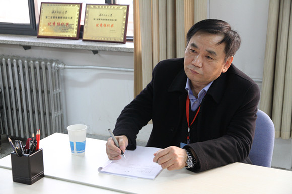 2017年12月13日下午16:50,本科教学工作审核评估专家组成员、山东师范大学教务处处长安利国来学院深度访谈,学院领导班子全体接受了访谈。