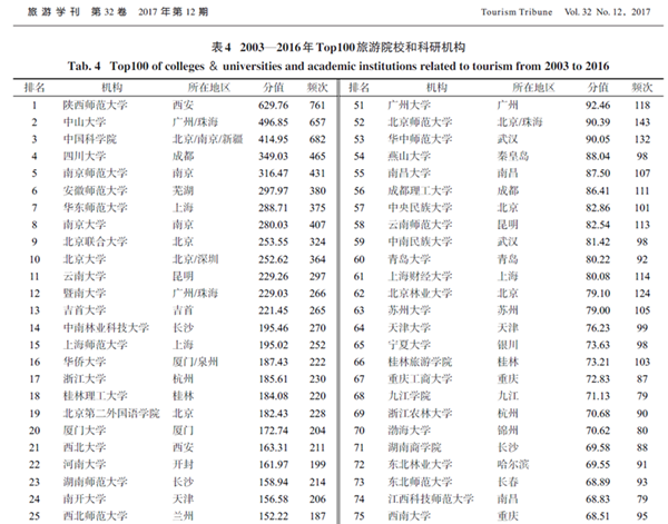 学院在《旅游学刊》“2003—2016年我国旅游学术共同体学术评价”中排名25位